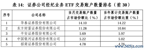 ETF交易账户:华泰证券依旧领先