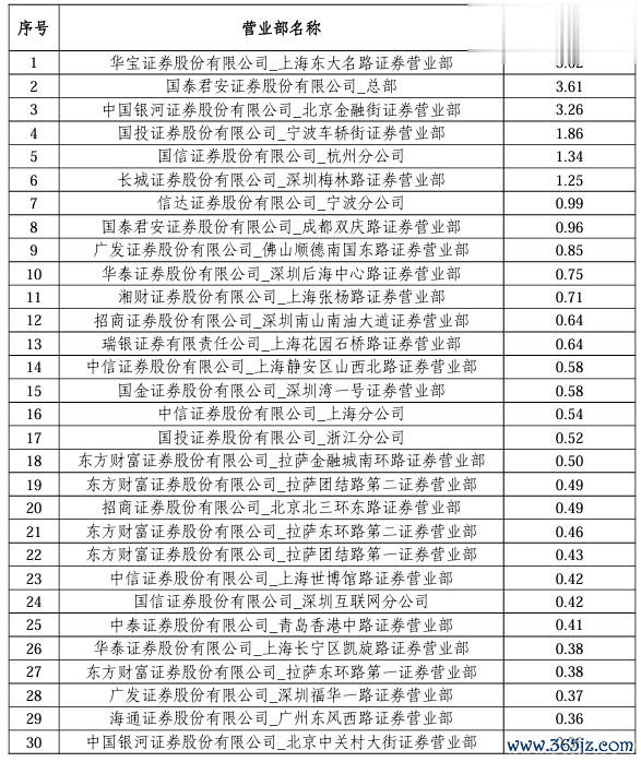 证券公司营业部经纪业务ETF成交额排名(前30)↓