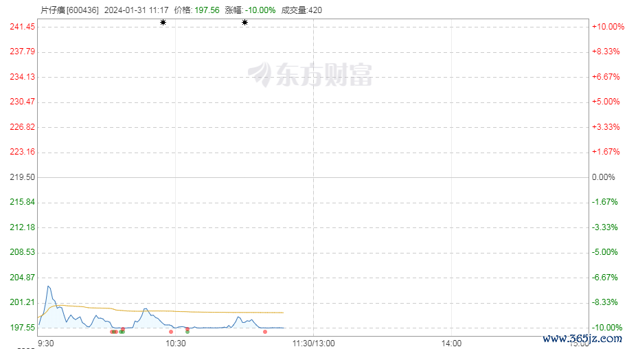 红星资本局1月31日消息,片仔癀(600436.SH)今日开盘不久后放量跌停,此后有所回升,截至发稿,再次跌停股票实盘配资平台,报197.56元/股,总市值1192亿元。